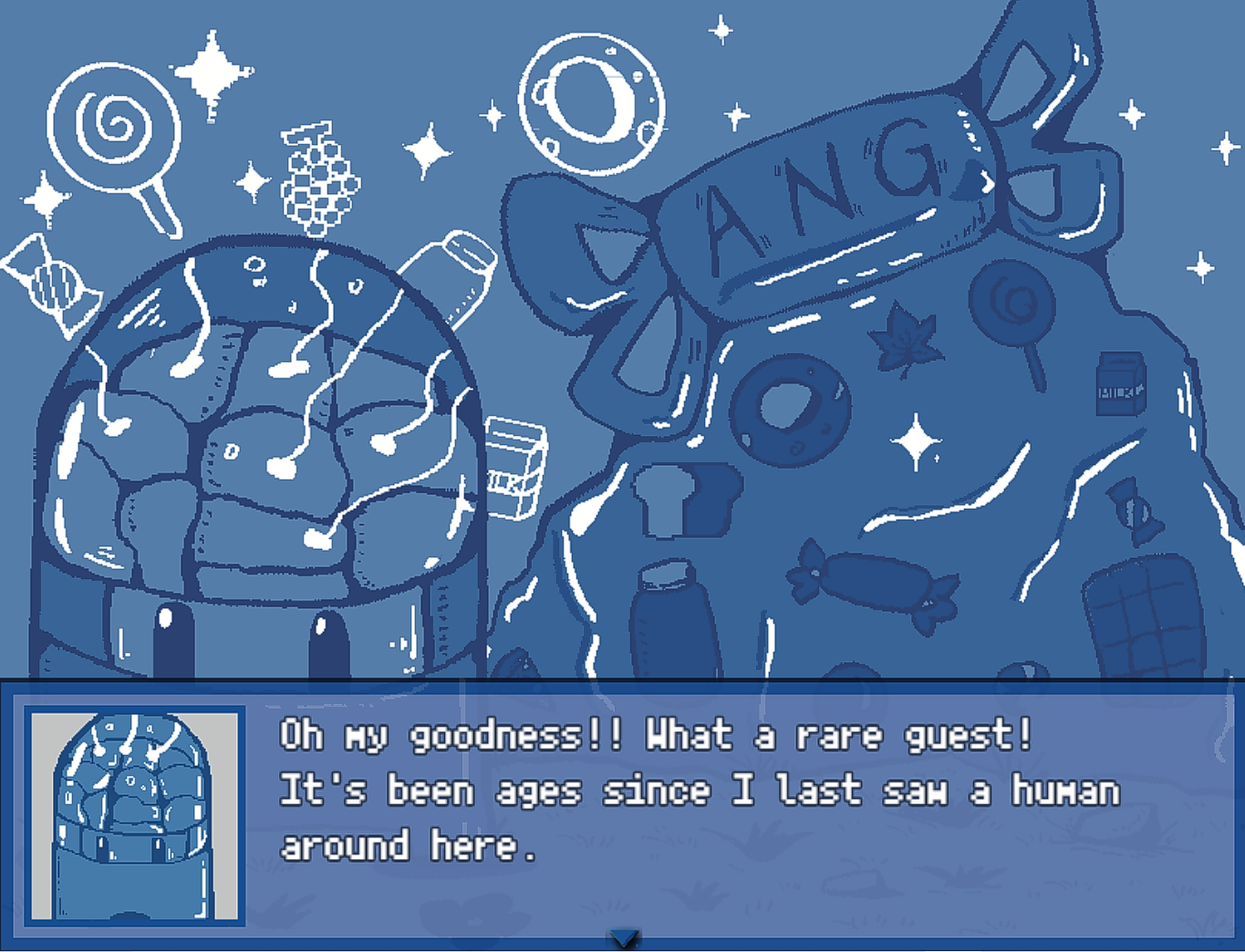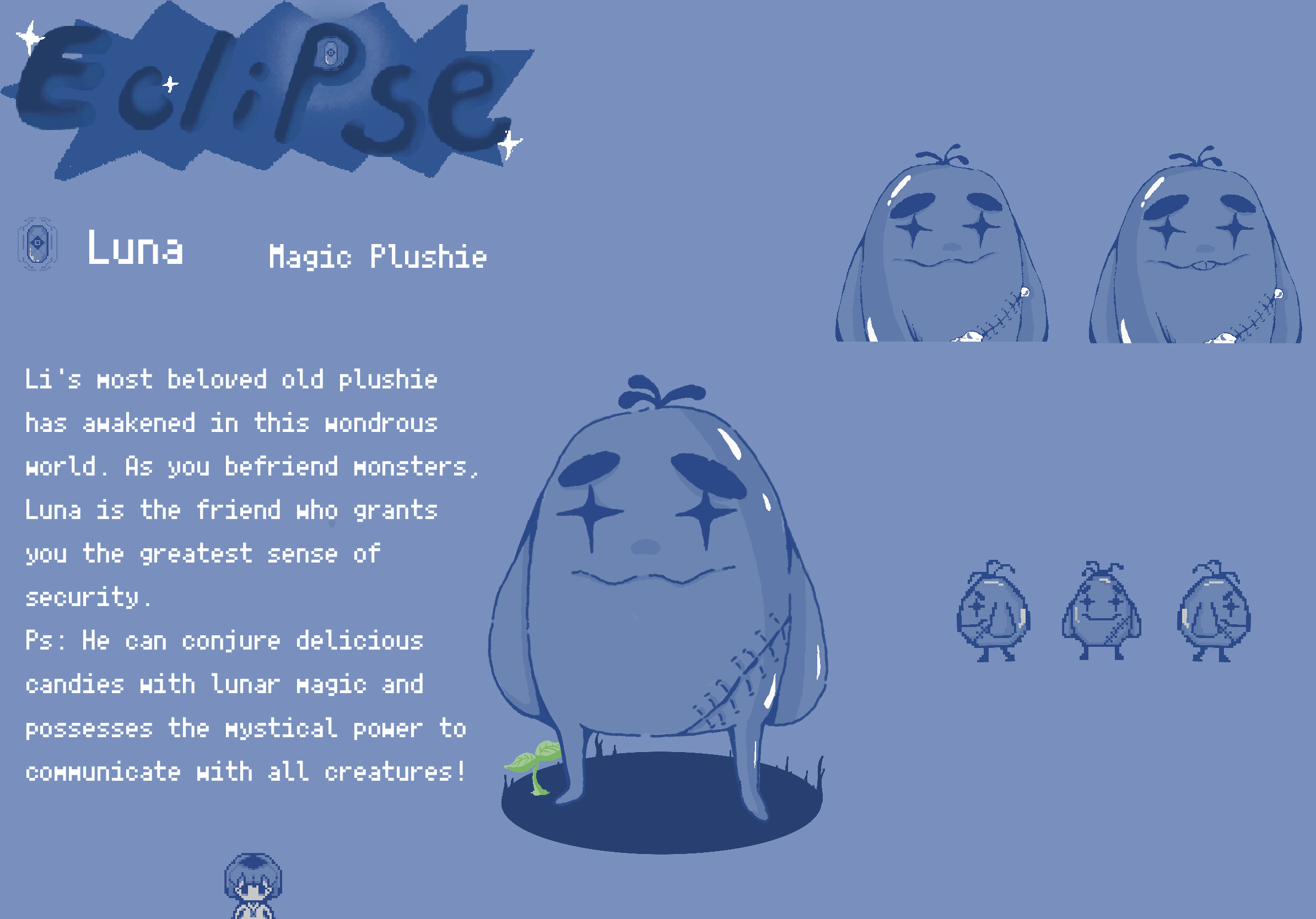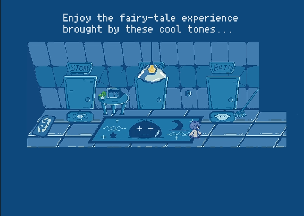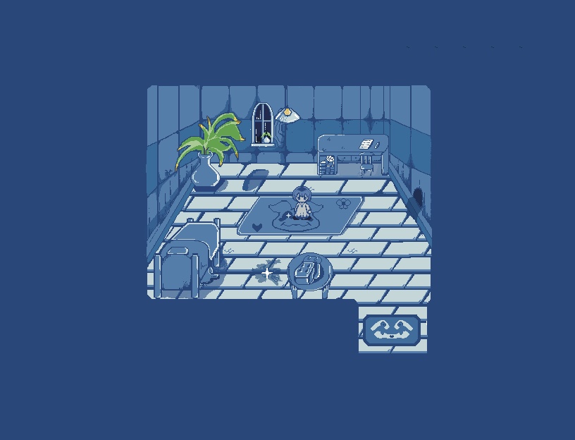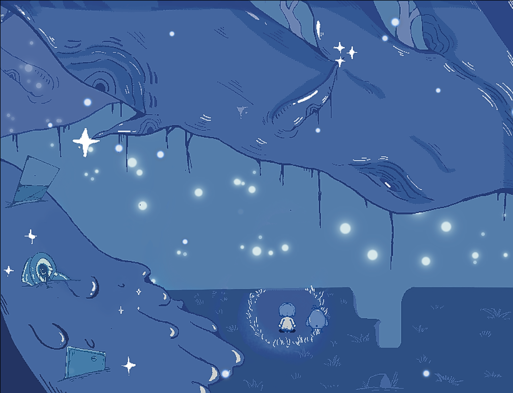 Pixel art with a cool-toned, dreamlike palette